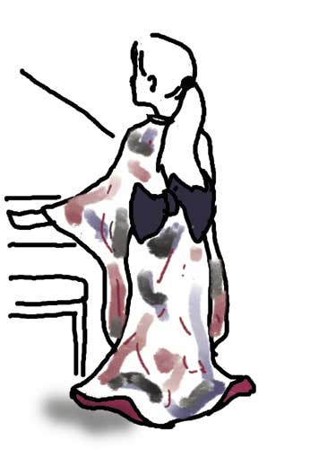 ソロコンサートに行ってきました。 ジンムと書いて、コウタケと読むそうです。 神武さんは、サティと、サティに影響を受けた フランス6人組を専門に 演奏するピアニストです。 前半、書道家SOGENさんという方との ジョイントだったので、 そのSOGENさんがデザインした 着物で登場しました。 着物だ!? ちょと客席でどよめきが…。 といっても、あくまでもクラッシック。 小さい「おう~」がかすかに聞こえた だけです(笑)けど。 自分も、もちろん、小さな声で どよめきました。 なんかうれしいぞ。そんな期待を感じたところで、 コンサートが始まりました。 気持ちが一気に演奏家にいきます。 イマジネーションも、どんどん広がります。 書道家のペインティングも、 墨だけではなく、フランスを 思わせる、赤や青が使われ、 フランス6人組を盛り上げます。 終わってロビーで、500円カンパで ワインとサンドイッチのお客さん参加の打ち上げ。 よいコンサートでした。 彼女の二枚のCD Cafe Poulenc(カフェ・プーランク) Cafe des Six http://www.extensionjapan.com/artist/kotake/cd/index.html は、構成も面白く、サティと6人組を 知るには、もしかしたら、もっともよいCD かもしれません。 |