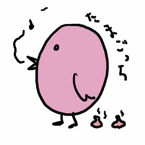 最近、家にたまごっちがいまちて。 今のたまごさんは、こんな感じでちて…。 ごきげんな時は、ピンクのうんちをします、 調子が悪いと、うんこ色のうんちをします。 つて、それは、うっそぉ。 たまご型のボタン3個並んでて、時々えさをあげて、 うんちかたずけないと、病気になるって、いう…、 普通のたまごっちです。 色々キャラがあります。 うちにいるのは、 いちごっち でち。まだ、1才みたいですが、 夕飯に、おにぎり6個も 食べっち。 くうかなあ?1ちゃいが。 おにぎりばかりじゃかわいそうなので、 スーパーマーケットにおいちいものを、 買いにいこうと思います。 お散歩とか。ゲームセンターも 行きたがります。 友だちもほしいって。 ああ、ちろん全部、たまごっち仮想都市の話です。 たまごっちは、あいかわらずなんだかんだたいへんですね。 しかしかわいい。困ったことに。 さっき見たら、もうぐっすり、すやすやっちになっていました。 8時になったら、ちゃんとおふとんに入ります。 こんなとこが、さらにかわいい。 PR クマリタ社長の会社の応接間のソファに