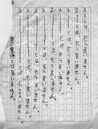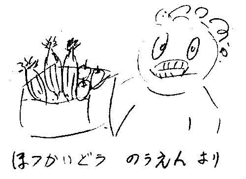 すみません。今日は、家族用の掲示板ですので、 ファミリーの方だけに。 これは、息子が小さい頃に 父の日に贈ったもの。 なぜ、父の日に、この詩なのか…。 「A Shark in park swiming in the mark」 なぜSharkなのか…? この裏が車の若葉マークに なってました。自分は、新米の ひよこさんってことなんでしょうか…。 どんなひねりなのか…解析不可能。 Dear Dod(God)は、けっこう好きです。 ♪のは、歌ったことはありません。 誰か、歌ってみてください。 この「えーと」を見た時は、あああ なんか、悪いものが遺伝してると思いました。 そして、今日にいたる。 そして、これは、めきし子さんの父が くれたカード。 イラストは、野菜を送ってくれた時に 入っていた手紙に描いてあったもの。 父の手紙には、時々こんな絵が 添えてあった。 「泣かないで…」のメッセージは、 夏休みに、初めて一人で北海道に 遊びに行くことになっていた 5才の私の息子に、航空券を送って くれた時、同封されていた手紙。 普通、”一人ぼっちで”とは言わず…。 「一人でも、泣かないで」と言う のではないでしょうか…。 父の手紙は、母のとは対照的に とても短く、思いがストレートに 伝わってくるものが多くて、 「泣かないでおいで」と言われて 私が泣けました。 しかも(笑) この頃、息子は北海道を外国と 思っていましたので、父は、外国のじーじ なのです。ですから、バカ母の私は完全に 母を訪ねて三千里のマルコに息子を 重ねていました。 心から、Happy Father's Day !!! |